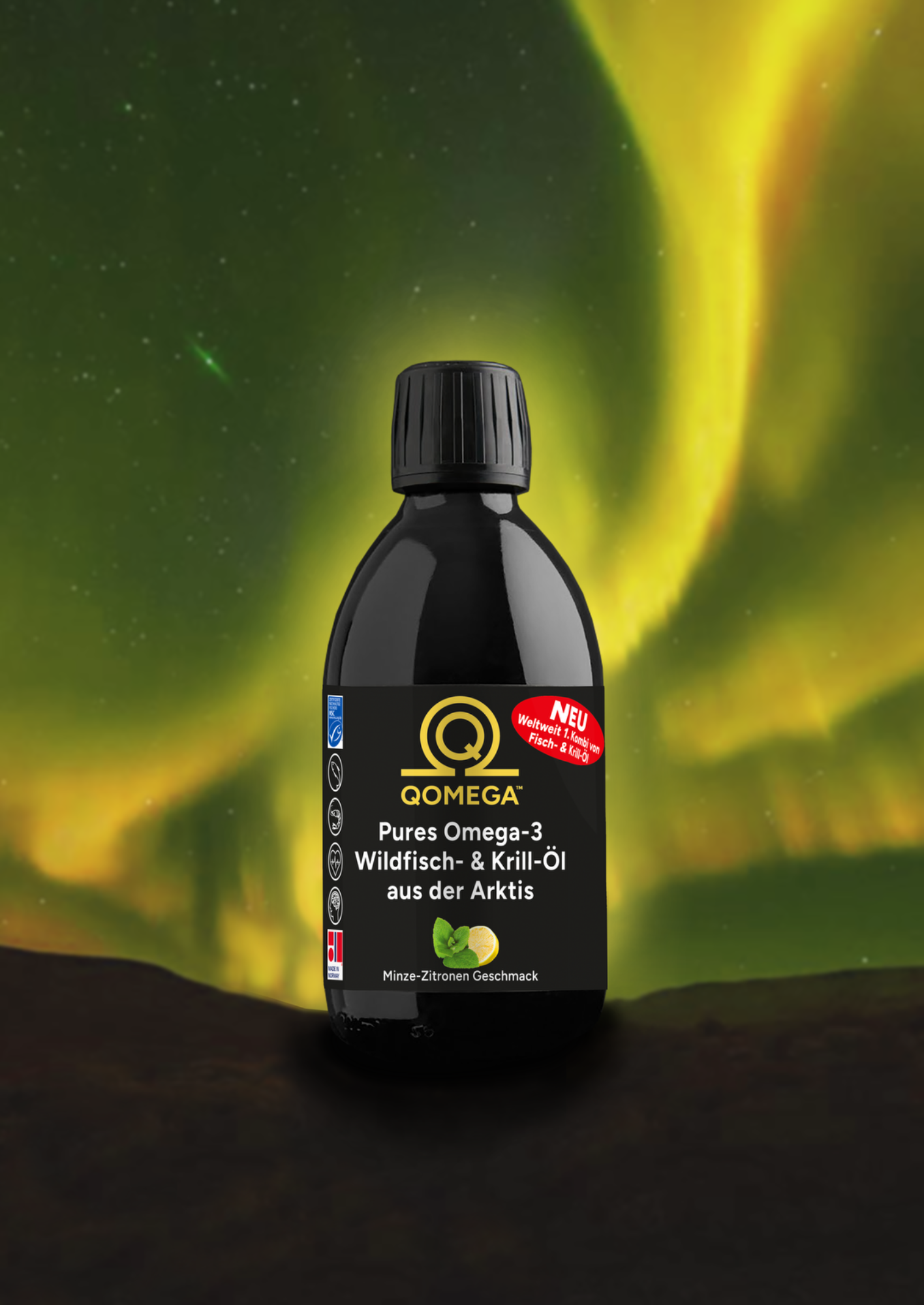 QOMEGA Pures Omega-3 Wildfisch- & Krill-Öl vereint die Vorteile der beiden Öle in nie da gewesener Weise